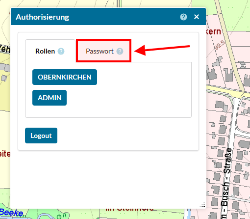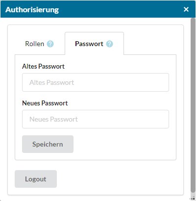 Während der Rollenauswahl besteht auch die Möglichkeit das eigene Passwort zu ändern. Klicken sie dazu auf den Reiter "Passwort".