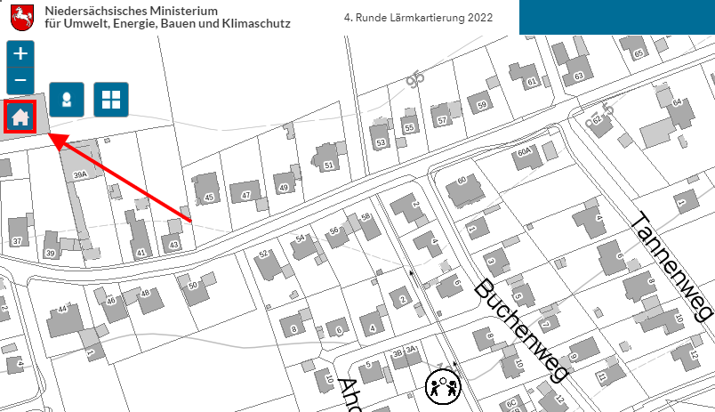 Ein Klick auf das Haus-Symbol bringt Sie in die Startansicht der Karte zurück.